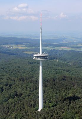 Situada a una elevación de 384 metros en la cumbre de Kühkopf, la torre transmite seis multiplexores de televisión digital mediante tecnología DVB-T2.