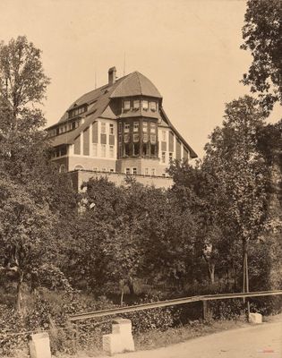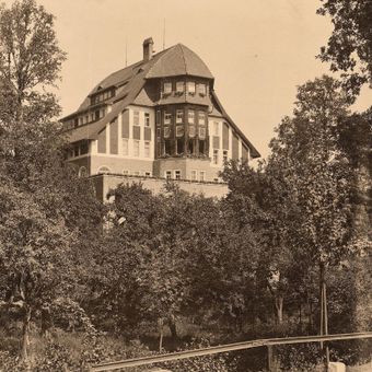 Situada en las coordenadas 51.10412, 15.59411, esta villa Art Nouveau integra motivos naturales, líneas curvas y elementos decorativos en su diseño arquitectónico.