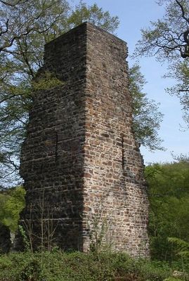 El Kattenturm, también conocido como Burg Luttelnau, se presenta como una fortaleza de piedra con elementos defensivos junto al río Ruhr.