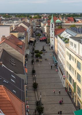 La Spremberger Straße se extiende 300 metros por el centro de Cottbus, conectando la plaza Brandenburger con el Altmarkt entre edificios históricos.