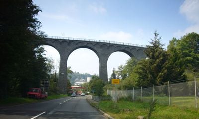 La estructura de piedra de cinco arcos eleva a los ciclistas a 28 metros de altura con vistas sobre la ciudad de Daun.