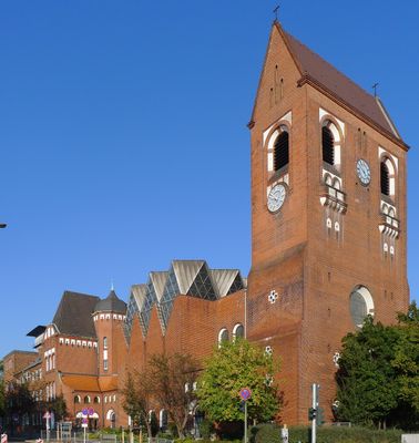 El edificio se construyo entre 1904 y 1906 segun los planos del arquitecto Jurgen Kroger y se convirtio en parte del paisaje urbano local. Tras los danos por bombardeo en la Segunda Guerra Mundial, se realizo una restauracion integral de 1957 a 1960 bajo la direccion de Konrad Sage.