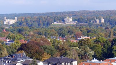 El príncipe Alberto de Prusia encargó la construcción del Palacio Albrechtsberg en la década de 1850, resultando en esta estructura clasicista prusiana diseñada por Alfred Lohse.