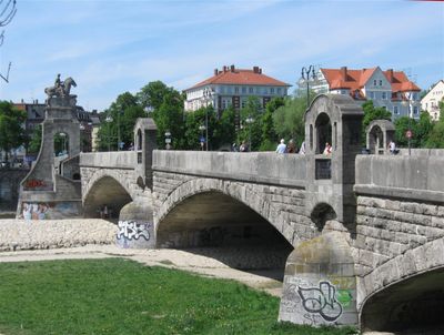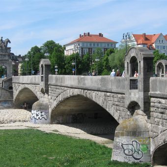 El Puente Wittelsbach cruza el río Isar con cuatro arcos de hormigón que miden entre 26 y 44 metros de longitud.