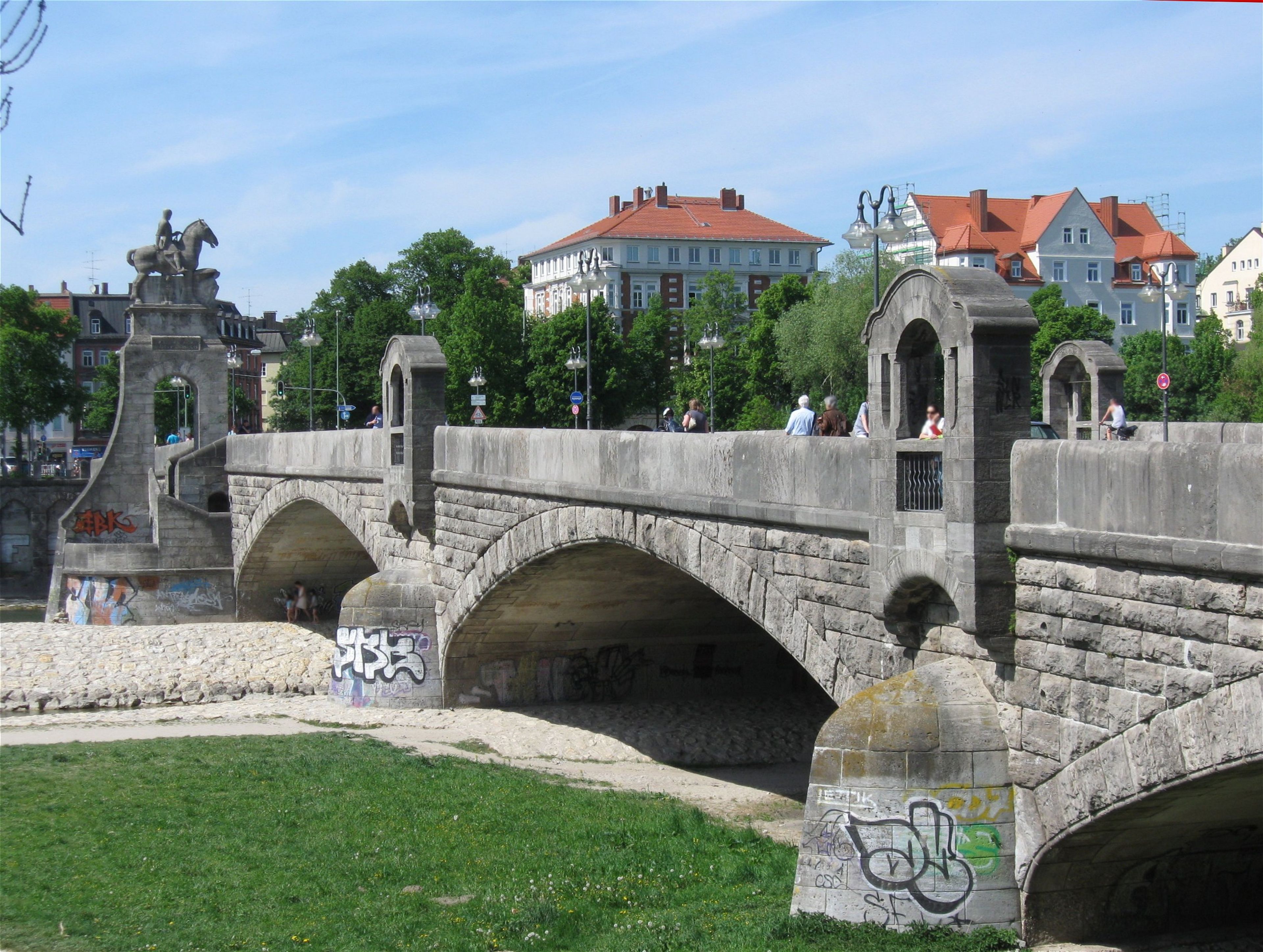 El puente soporta tráfico vehicular y peatonal, conectando los distritos de Isarvorstadt y Au a lo largo de sus 140 metros.