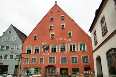 El edificio Kramerzunft exhibe tallas en piedra en su fachada y elementos arquitectónicos tradicionales del período bávaro del siglo XVI.