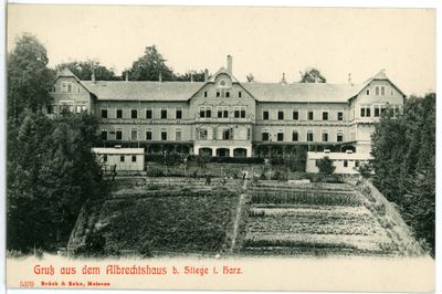 La arquitectura de Albrechtshaus representa las características de las instituciones médicas alemanas de su época, con elementos específicos para el cuidado de pacientes.