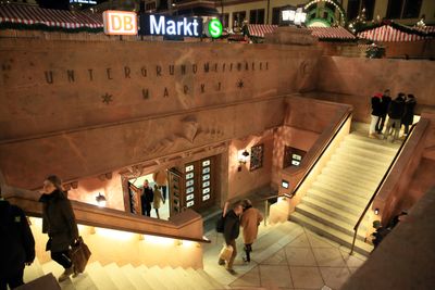 El Untergrundmessehaus presenta una entrada con escalera doble de estilo Art Déco que conduce a un espacio expositivo subterráneo de 1.800 metros cuadrados.