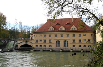 Construida en 1908, esta central marcó el inicio de la producción de energía hidroeléctrica en Munich, demostrando los logros de la ingeniería industrial en Baviera.
