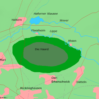 La Haard es una cadena montañosa en Renania del Norte-Westfalia compuesta por colinas onduladas cubiertas de bosque que se extienden por la región. El terreno presenta valles arbolados y crestas conectadas por numerosos senderos que cruzan la zona.