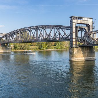 El puente levadizo de Magdeburgo se extiende 220 metros sobre el río Elba, con un sistema mecánico que se eleva para permitir el paso de embarcaciones.