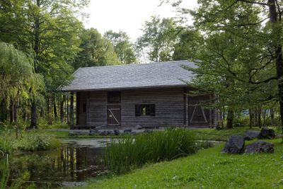Hunding's Hut, Cabaña germánica reconstruida en el Parque Linderhof, Alemania.