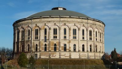 La estructura comenzó como depósito de gas en 1878 antes de su transformación en espacio expositivo por el artista Yadegar Asisi en 2006.