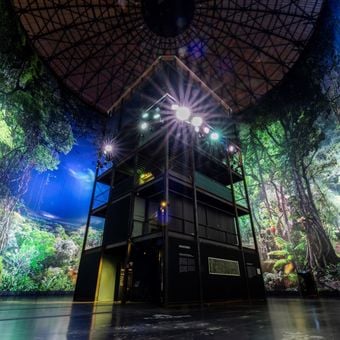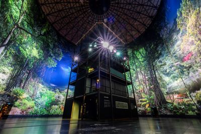 El Panometer de Dresde ocupa un antiguo depósito de gas, exhibiendo imágenes circulares inmersivas que alcanzan 27 metros de altura con efectos de luz y sonido.