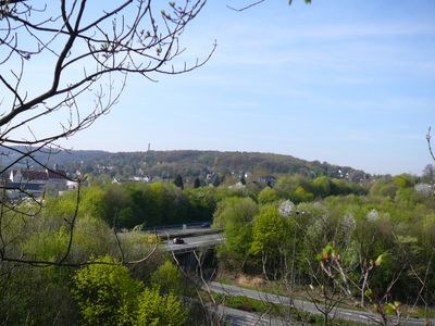 La montaña ofrece vistas del monorriel suspendido de Wuppertal, que recorre el valle a una altura de hasta 12 metros sobre el suelo.