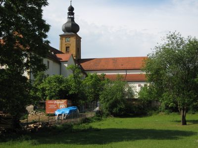 La Abadía de Weissenohe comprende varios edificios de piedra, incluyendo una iglesia con elementos arquitectónicos barrocos y una cervecería en funcionamiento.