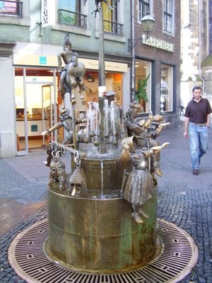 Situada en Kramerstrasse cerca de la Catedral de Aquisgrán, esta fuente permanece accesible durante todo el día y permite interactuar con sus figuras móviles.