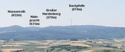 La montaña Sackpfeife alcanza una altura de 673.3 metros y se encuentra entre los condados de Waldeck-Frankenberg y Marburg-Biedenkopf en Hesse.