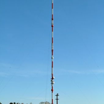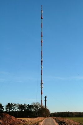 El transmisor de Behren-Bokel se eleva a 323 metros de altura, construido como un mástil de celosía de acero cerca de las aldeas de Behren y Bokel.