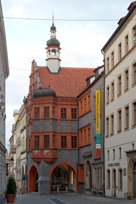 Archivflügel als Teil des Rathaus Görlitz (Untermarkt 6, 7, 8), mit Brunnenbecken in Wandnische und Gitter Apothekergasse 7