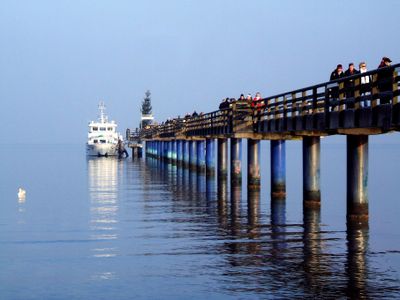 El muelle de Boltenhagen se extiende aproximadamente 290 metros hacia el Mar Báltico y proporciona acceso al agua y vistas de la línea costera del norte de Alemania. La estructura conecta la zona de playa con aguas abiertas y permite a los visitantes caminar para pescar, acceder a la natación o simplemente disfrutar de vistas al mar.