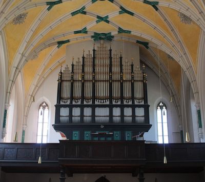 La estructura de ladrillo de St. Nikolaus incorpora arcos apuntados, ventanas altas y elementos arquitectónicos típicos del diseño neogótico.