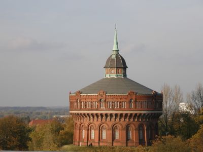 La torre de agua Ravensberg es una estructura cilíndrica de ladrillo rojo que se eleva aproximadamente 34 metros en el barrio del mismo nombre. Su forma simple y directa muestra el enfoque funcional de la ingeniería de finales del siglo 19.