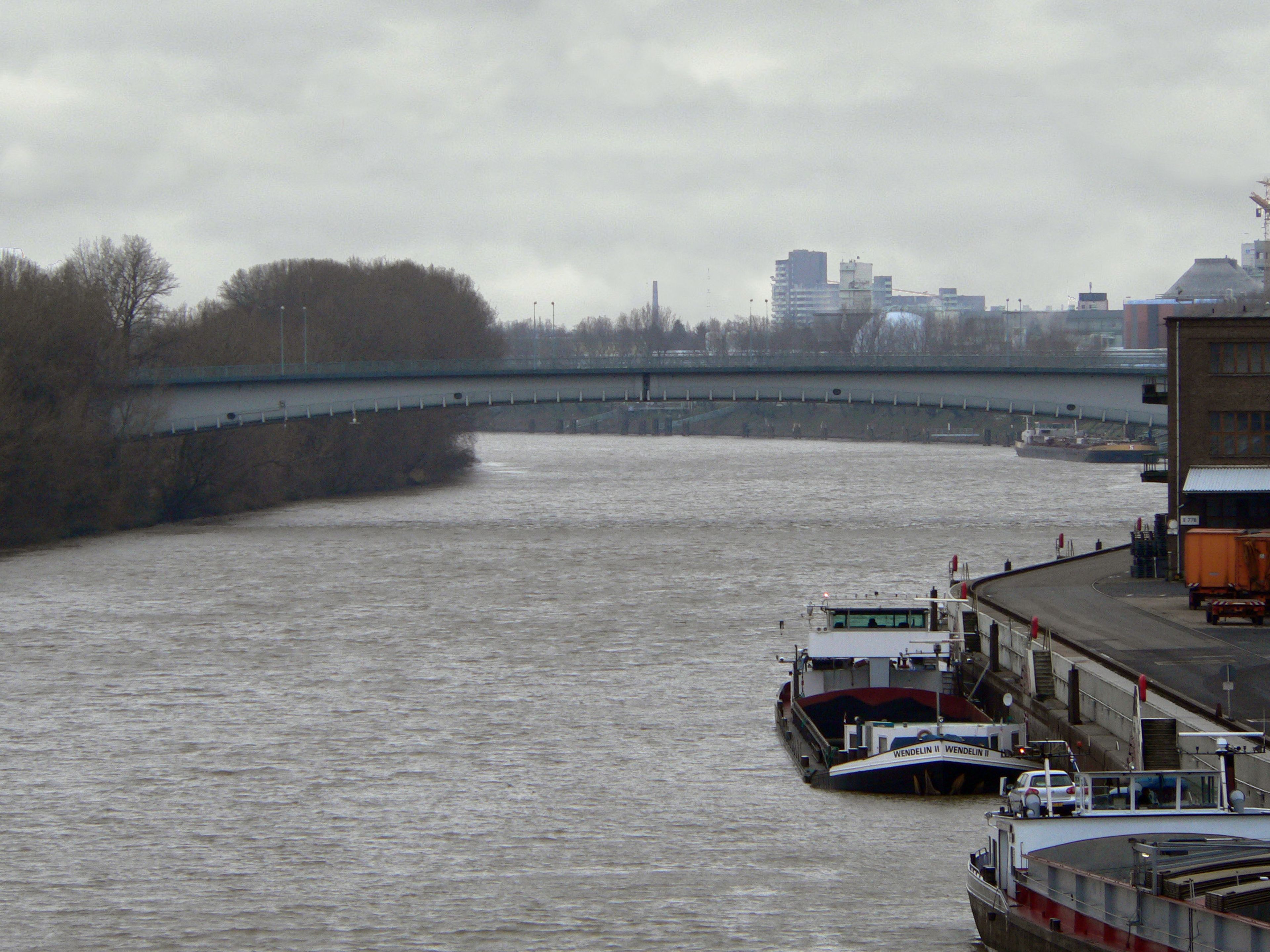 Werksbrücke Mitte, private Straßenbrücke über den Main im Industriepark Höchst im westlichen Frankfurt am Main