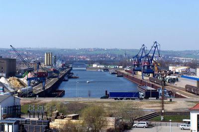 El Alberthafen Dresden se extiende sobre 42 hectáreas junto al río Elba, con una dársena dividida en tres secciones para operaciones marítimas.