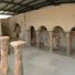 La estructura religiosa presenta tres naves, pilares de piedra y cimientos preservados que muestran elementos arquitectónicos medievales.