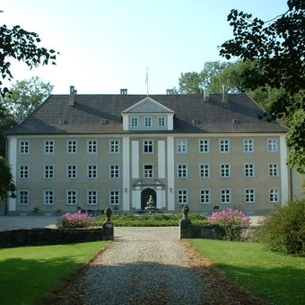 El castillo contiene una colección de retratos familiares, muebles antiguos del siglo XIX y una extensa colección de porcelana alemana.