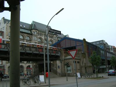 La estacion de Rödingsmarkt fue construida en 1912 como un ferrocarril elevado y muestra ejemplos tempranos del diseno ferroviario de esa epoca. La estructura sigue siendo uno de los edificios de transporte mas antiguos aun en uso de Hamburgo.