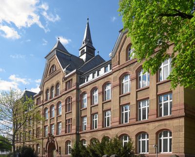Construida entre 1901 y 1903 según los planos del arquitecto municipal Franz Frenay y Johann Kling, esta estructura inició el desarrollo de la isla escolar de Darmstadt.