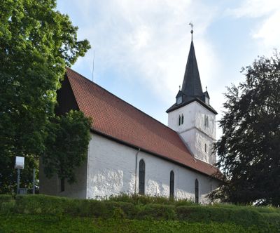 La torre de la iglesia se originó en el siglo XII como estructura defensiva, posteriormente conectada a una capilla construida alrededor de 1300.