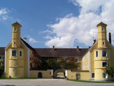El Schloss Puchhof presenta arquitectura neobarroca con una capilla rectangular que alberga a 80 personas en el nivel inferior del ala sur.