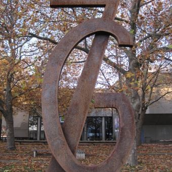 La escultura de acero de 1,70 metros forma la letra G y el número 7, montada sobre una base de arenisca de 1,20 metros.