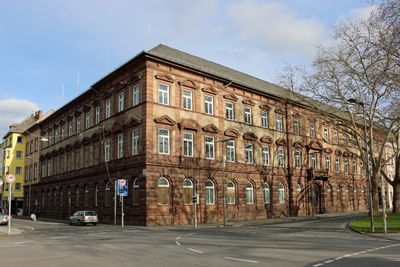 La Alte Oberpostdirektion es un edificio administrativo del siglo 19 situado en el centro de Coblenza, con fachadas simétricas y elaborados detalles de piedra en todo su exterior. La estructura muestra elementos característicos de esa época, con patrones regulares de ventanas y rasgos arquitectónicos expresivos que enmarcan las entradas principales.