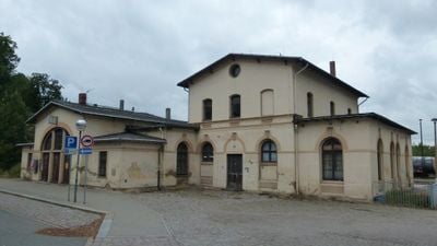 La estación ferroviaria se encuentra a una altitud de 219.49 metros, presentando elementos arquitectónicos característicos de infraestructura alemana del siglo XIX.