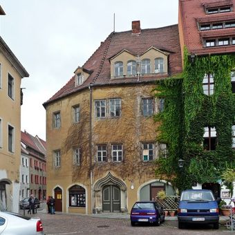 El portal de entrada con sus bancos de piedra representa uno de los primeros ejemplos conservados de este elemento arquitectónico en Sajonia.