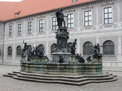 La fuente se encuentra en el patio interior y es accesible para los visitantes durante el horario de museo. Las paradas de transporte cercanas en Odeonsplatz y Marienplatz ofrecen acceso conveniente por transporte público al complejo palaciego.