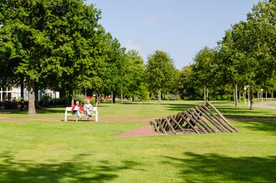 El parque se extiende detrás de un dique marino cerca de la bahía de Grimmershörn, con un lago semicircular rodeado de senderos.