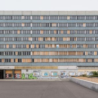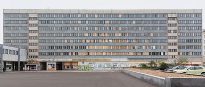 La planta baja albergaba diversos espacios comerciales, incluida la agencia de viajes de la RDA, conectada con los almacenes Karstadt.