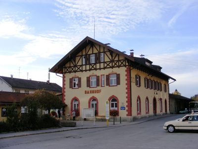 El edificio de la estación incorpora elementos arquitectónicos bávaros tradicionales, incluyendo plataformas con Perrongitter de hierro y una cabina de señales conservada.