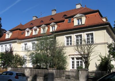 Polizeirevier, teil eines schlösschenartigen Doppelhauses (mit Nr. 5), neubarock, mit Mansarddach, Anfang 20. Jh