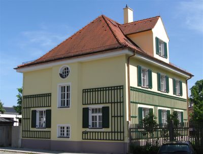 Bürogebäude, städtische Müllbeseitigung Süd, zweigeschossige Villa mit Walmdach, von Richard Schachner, um 1909