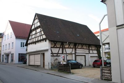 Ehemaliger Stadel, mit zweifach vorkragendem Fachwerkgiebel, 17. Jahrhundert