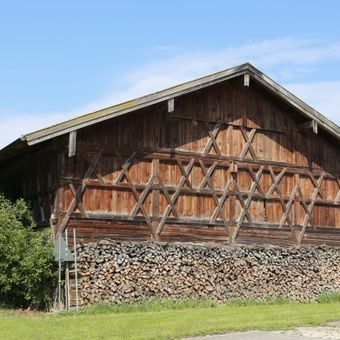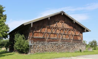 Stadel, ständerbohlenbau mit Bundwerk und Flachsatteldach, Ende 18. Jahrhundert, wohl nach Nordwesten versetzt