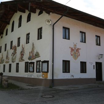 Gasthof in Form einer Dreiflügelanlage um einen Hof