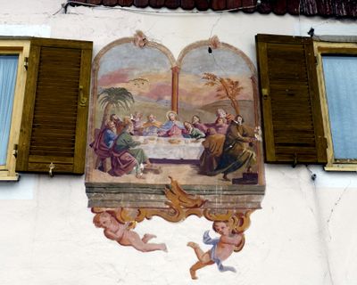 Steinbachergasse 1, zwei barocke Fresken, südliches bezeichnet Franz Seraph Zwinck, um 1780, erneuert