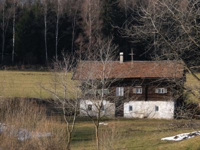 Kleinhaus mit Blockbau-Obergeschoss und Giebellaube, building in Sankt Englmar, Lower Bavaria, Germany